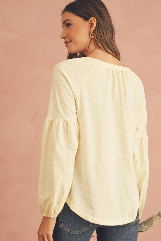 Beige Balloon Sleeve Casual Collared Button Sweatshirt