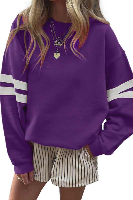 Tillandsia Purple Preppy Striped Sleeve Loose Sweatshirt